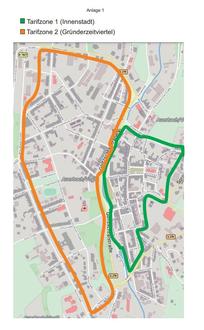 (3) Die Bewohnerparkgebiete der Stadt Auerbach/Vogtl. werden in zwei Tarifzonen gemäß der Anlage 1 unterteilt. Die Anlage selbst ist Bestandteil dieser Verordnung.