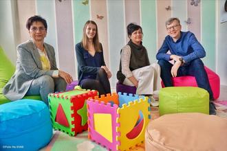 Katrin Lorenz, Natalie Graupner und Kersten Gehring (von links / auf dem Foto mit Knut Kirsten von der Stadtverwaltung Auerbach) sind fachlich bestens ausgebildete Gesundheits- und Kinderkrankenschwestern.
