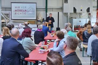 „Das Besondere dabei ist es, das sämtliche gefertigte Möbel in enger Zusammenarbeit zwischen behinderten Beschäftigten und Mitarbeitern der Diakonie gebaut werden. Damit setzt die Diakonie ihren Auftrag, behinderten Menschen die Teilnahme am Erwerbsleben zu ermöglichen, in einem weiteren Punkt in die Realität um“, lobte Knut Kirsten von der Stadtverwaltung Auerbach/Vogtl., der im Auftrag des Oberbürgermeisters dem Team der Diakonie-Möbelproduktion viel Erfolg für das neue Vorhaben wünschte.