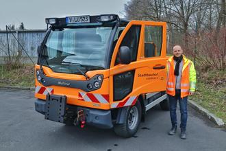 Auerbachs Bauhofchef Rigo Knoppik freut sich über den neuen Multicar, der seit wenigen Tagen durch die Drei-Türme-Stadt rollt.