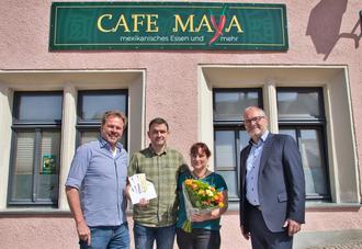Die Inhaber - Reina Thümer und Mario Mohs - servieren ihren Gästen in einem völlig neuen Ambiente Tapas, Tacos, Burritos, Cocktails, internationale Kaffeespezialitäten und vieles mehr. Zur Eröffnung gratulierten Auerbach Oberbürgermeister Jens Scharff und Citymanager Uwe Prenzel den beiden Wirtsleuten und wünschten viel Erfolg.