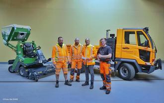 Rigo Knoppik, der Leiter des städtischen Bauhofes (im Foto zweiter von rechts), freut sich sehr über die Erweiterung des Fuhrparkes. "Wir haben vor wenigen Tagen einen nagelneuen Multicar und einen hochmodernen Rasenmäher in Betrieb genommen", berichtet er.