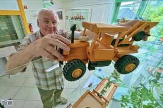 Detailgetreue Holzfahrzeuge werden jetzt in der neuen Sonderausstellung im Auerbacher Stadtmuseum gezeigt. LKWs, Feuerwehrfahrzeuge, Langholz-Transporter, Ural-Schneefräsen, Müllwagen, Werbe-Trucks von Brauereien und vieles mehr: Die Fahrzeuge aus der Werkstatt von Holzgestalter Andreas Kunz sind Unikate und mit viel handwerklichen Geschick und Liebe zum Detail entstanden.