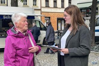 Auf dem Neumarkt-Wochenmarkt, in der Fußgängerzone und auf dem Altmarkt trafen sie auf recht auskunftsfreudige Bürgerinnen und Bürger.