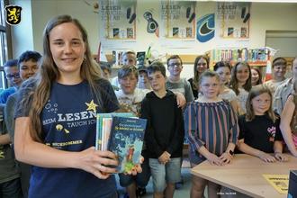 Im Laufe der Sommerferien haben alle Teilnehmer die Möglichkeit, sich Bücher aus einem speziell für den Buchsommer angeschafften Bestand (rund 350 Bücher) auszusuchen und diese zu lesen.
