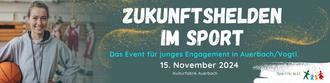 Die Stadtverwaltung Auerbach/Vogtl. unterstützt im Rahmen des ESF-Förderprojektes “Sport für Alle” die Bemühungen der Auerbacher Sportvereine und veranstaltet im November 2024 das Event *ZUKUNFTSHELDEN IM SPORT*, um junge Macher, Gestalter und Helden für ihre Mitarbeit zu ehren und damit Anreize zu schaffen, sich auch zukünftig zu engagieren. In der Kulturfabrik werden die Vereine und ihre Kandidaten mit leckerem Fingerfood, toller Musik und coolem Entertainment begeistert.