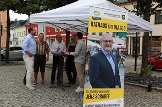 Unter dem Motto "Rathaus im Dialog - ich nehme mir Zeit für Sie" führt Auerbachs Oberbürgermeister Jens Scharff gemeinsam mit Fachbereichsleitern der Stadtverwaltung regelmäßig persönliche Sprechstunden für die Bürger durch. Das monatlich im Rathaus stattfindende Gesprächsangebot wird von den Bürgerinnen und Bürgern sehr gut angenommen.