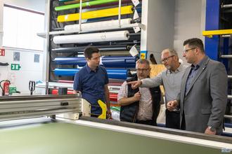 „Wir entwickeln und fertigen textile Systeme im Bereich des Sonnen- und Wetterschutzes. Zudem gehören zu unseren Produkten Transporttextilien, Bau- und Industrietextilien sowie textile Architektur“, erklärte der Paulus-Inhaber Steffen Golle, der mit sichtbarem Stolz die beiden Politiker durch die Produktionshallen führte.