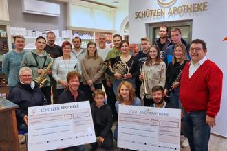 Das Auerbacher Apotheker-Ehepaar Kristina und Malte Löscher überreichte dem Stadtorchester Auerbach/Vogtl. (ehemals Jugendblasorchester) am Montag eine schöne Spende. Stolze 1.378 Euro wurden dem Orchester übergeben. „Für freuen uns sehr über die großzügige Spende und bedanken uns bei Frau und Herrn Löscher sehr herzlich“, so Stefan Lorenz, der 1. Vorsitzende des Orchester-Fördervereins.