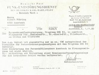 Doch das ganze Vorhaben war nicht so einfach. Der sozialistische Staat war nicht daran interessiert, dass DDR-Bürger guten Westempfang bekamen. Es ging also nur über den „Trick“, man musste Häuser oder Straßenzüge finden, die keinen oder schlechten Empfang von DDR-Sendern hatten. Es ging also darum, wo ist so eine Situation, wer kennt wen, wer kann helfen mit Meßtechnik solche „Sendelöcher“ zu finden und uns das „amtlich“ schriftlich bestätigen.