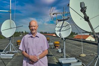 Hans-Reinhard Glutsch, 82 Jahre jung, klettert immer wieder einmal auf das Dach eines Auerbacher Wohnhauses an der Eisenbahnstraße. Dort oben steht die Antennen-Kopfstation, die viele Auerbacher Haushalte mit einem technisch soliden Fernsehempfang versorgt.