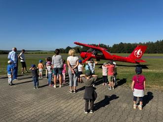Der Septemberanfang hielt für die Kinder der Bienchen- und Wackelzahngruppe eine große Überraschung bereit: Wir waren auf dem Auerbacher Flugplatz eingeladen. Der Papa unserer Adina hatte für uns so einiges organisiert. Nach einer schweißtreibenden Wanderung von unserem Kindergarten zum Flugplatz erwartete uns Adinas Familie und wir konnten uns erstmal mit Würstchen und Getränken stärken. Anschließend ging es dann richtig los! Wer wollte durfte selbst mal Pilot sein und sich in ein Flugzeug setzen und Schalter und Hebel betätigen. Danach konnten wir das Abheben von 2 Flugzeugen beobachten. Zu gerne wäre so mancher mitgeflogen im roten Propellerflugzeug von Adinas Papa, doch das durfte an diesem Tag leider nur Adina.