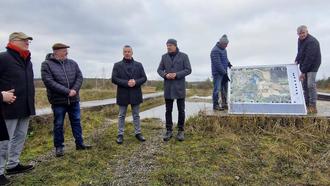 (v.r.n.l.) A. Rößler (Dezernent Anhalt-Bitterfeld), Löbnitzer Bürgermeister D. Hoffmann, Landräte A. Grabner und K. Emanuel, E. Lange und C. Bartz von den unteren Wasserbehörden der Landkreise