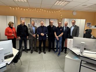 Gabriele und Reiner Haseloff im Gespräch mit dem dienstältesten Disponenten der Leitstelle, Ralf Hauser.