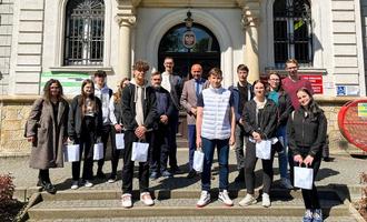 Vor der Kreisverwaltung Pszczyna mit polnischen Berufsschülern.