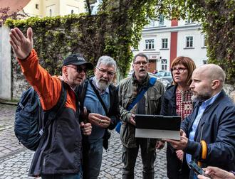 Marcin Cyran vom Schloss Pszczyna (re) im Gespräch mit Vertretern des Landkreises ABI