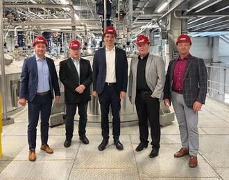 v. l. n. r.: Daniel Krake, Burkhard Bresch, Geschäftsführer Hon.-Prof. Dr.-Ing. Mirko Peglow, Prof. Dr. Thomas Brockmeier, Landrat Andy Grabner