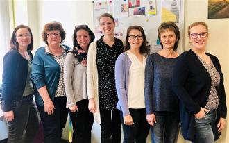 Team des Sozialpsychiatrischen Dienstes: Josepha Oldörp, Cornelia Lindner, Kristin Liebal, Luisa Geßner, Antonia Thamm, Monika Behnke, und Carolin Grune (v.l.)