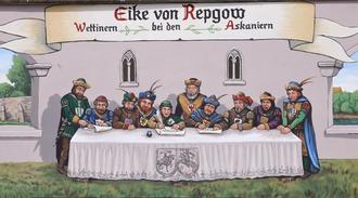 Über das Leuchtturmprogramm des Landkreises zur Förderung von Kultur im ländlichen Raum 2022 entstand in Reppichau eine große neue dreiteilige Fassadenbemalung. In diesem Jahr wird das Kunstprojekt Sachsenspiegel im Eike-von-Repgow-Dorf mit Mitteln des Landkreises fortgesetzt.