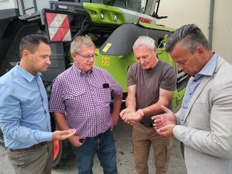 Das interessiert auch Landrat Andy Grabner. Deshalb besuchte er Mitte Juli gemeinsam mit dem Mittelstandsbeauftragten der Kreisverwaltung, Daniel Krake, die Agrargenossenschaft Löberitz e.G. Begrüßt wurden die Gäste vom Vorstandsvorsitzenden Thomas Külz, der zugleich auch Vorstandsvorsitzender des Bauernverbandes Anhalt e.V. ist, und Produktionsleiter Andreas Heinz. Um es vorweg zu nehmen: Auch in diesem Jahr wird es im Bereich der Agrargenossenschaft Löberitz eine eher unterdurchschnittliche Ernte geben. Seit Ende Mai fehlt einfach der Regen. Und das hat natürlich Folgen für die Bildung der Früchte bei den Pflanzen. Während Thomas Külz mit der bereits eingefahrenen Wintergerste noch einigermaßen zufrieden sein kann, sehen die Prognosen für Weizen, Raps, Winterroggen und Mais weniger gut aus. So müssten die Weizenkörner doppelt so groß sein, wie sie jetzt sind. Weniger Ertrag und geringere Qualität führen zu wirtschaftlichen Verlusten, die das Unternehmen dann verkraften muss. „Das kann“, so Külz, „einige Kilometer weiter schon ganz anders aussehen“. Maßgebend ist, wann es wo ausreichend regnet. Eine Rolle spielt auch die Beschaffenheit der Böden.