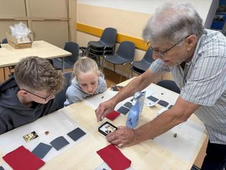 Konzentriert bei der Arbeit - mit fachmännischer Unterstützung schliffen die Ferienkinder ihren eigenen Bernstein.