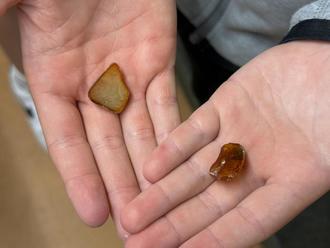 Doch nach und nach wurden die Steine ganz glatt und ein Blick ins Innere des Steins wurde möglich. Zum Schluss kam dann noch eine Tube Zahnpasta zum Einsatz, die bisher unbeachtet auf dem Tisch stand. „Mit der polieren wir den Bernstein jetzt auf Hochglanz“, verriet Thomas Zeidler und half den Kindern bei dieser letzten Aktion. Dann beschrieben die Jungen und Mädchen ihren Bernstein und tatsächlich: jeder Stein sah etwas anders aus, als der des Tischnachbars. Und mit Ihren Unikaten in der Hand und viel neuem Wissen im Kopf verließen die Kinder schließlich das Museum.