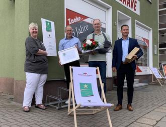 Nun gab es für den Gewinn von der Agrarmarketinggesellschaft Sachsen-Anhalt noch ein ganz besonderes Schild. Dieses weist ab sofort am Fleischerladen in Zerbst die Kunden auf den Gewinn eines Sterns im diesjährigen Wettbewerb „Kulinarisches Sachsen-Anhalt“ hin. „Das macht schon auch ein wenig stolz“, räumte Zaake bei der Übergabe von Schild und Urkunde ein.