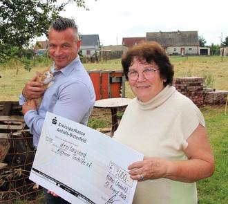 Auch im Katzenhaus in Pfaffendorf ist die finanzielle Unterstützung sehr willkommen. Wie die Vorsitzende des Tierschutz Köthen e. V., Evelyn Schwerdtfeger, berichtet, muss dringend ein neuer Rasenmäher her. Zudem kämpfen die engagierten Tierschützer auch mit den steigenden Kosten für tierärztliche Behandlungen. 29 Katzen werden gegenwärtig in Pfaffendorf beherbergt. Darunter auch der acht Wochen alte Dagobert aus Dohndorf, der sich offensichtlich im Arm des Landrates Andy Grabner sehr geborgen fühlt. Der Stubentiger wurde im Alter von gerade mal drei Wochen herrenlos in Dohndorf aufgefunden. Mit Hilfe einer Katzenamme und mit viel Liebe der Vereinsmitglieder kann Dagobert nun mit Zuversicht in sein künftiges Leben blicken. Und vielleicht findet er ja bald ein neues Zuhause. Dagobert ist nur ein Beispiel von vielen. „Wenn wir gerufen werden, sind wir da“, sagt Evelyn Schwerdtfeger. Seit 16 Jahren engagiert sie sich für den Tierschutz. Den Verein gründete sie 2012.