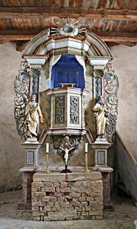 Der Landkreis fördert Vorhaben zur Sanierung und Instandsetzung von Kulturdenkmalen in Form einer Anteilsfinanzierung, so auch bei der Kirche in Kermen. Ein Teil der Sanierung betrifft auch den Kanzelaltar mit Figuren der Heiligen Petrus und Paulus.