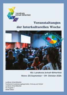 Auch im Landkreis Anhalt-Bitterfeld finden in der Zeit vom 20. September bis 09. Oktober 2024 zahlreiche Veranstaltungen statt. Informieren Sie sich dazu gern auf der Homepage des Landkreises Anhalt-Bitterfeld unter: www.anhalt-bitterfeld.de/Tourismus&Kultur/Interkulturelle Woche.