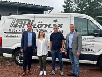 Landrat Andy Grabner, Geschäftsführer Michael Frühauf, Assistentin der Geschäftsleitung Julia Hartmann und Mittelstandsbeauftragter Daniel Krake. (v.r.n.l.)