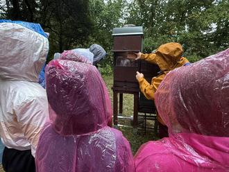 Blick in den Bienenstock - in dem ist bei regnerischem Wetter richtig viel los.