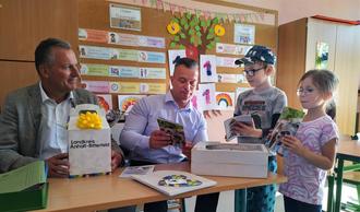 Die ersten Exemplare überreichten Landrat Andy Grabner und Dezernent Andreas Rößler persönlich in der Basisförderschule Dr.- Samuel-Hahnemann in Köthen und in der Förderschule „H.E. Stötzner“ in Güterglück (Stadt Zerbst).