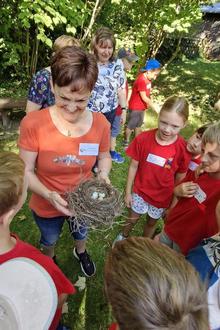 Am Projekttag gaben Naturfreunde ein Amselnest als Anschauungsobjekt ab.