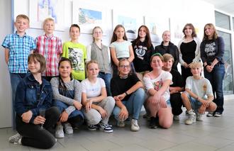 Die jungen Künstler vor einem Teil ihrer Bilder