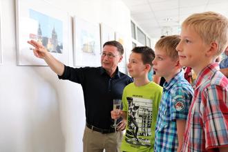 Uwe Holz, Fachdienstleiter Museen beim Landkreis, freut es, dass hier junge Menschen vereint sind, die sich für das Malen und Zeichnen entschieden haben. Er weiß, das Gesehene über eine Bewegung mit der Hand in ein Bild oder eine Zeichnung umzusetzen, verlangt Willen und Ausdauer und Hartnäckigkeit. Hier ein Ziel zu erreichen, verlangt außerdem viel Mühe und Aufmerksamkeit. Techniken müssen erlernt und durch stete Wiederholungen verbessert, ja perfektioniert werden, so Uwe Holz zur Eröffnung der Ausstellung. Weiterhin muss der, der malt, wahrnehmen und differenzieren können. All dies scheint schwierig. Deshalb ist es gut, wenn es einen Pädagogen gibt, der die jungen Künstler anleitet. Thomas Blaszcyk tut dies seit vielen Jahren mit Erfolg. Er berät, hält bei der Stange, ermutigt. Er führt und inspiriert, so Uwe Holz. Dafür gebührt ihm Dank.