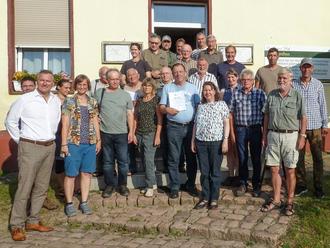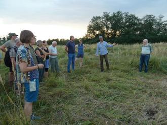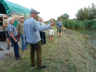 Dr. Stefan Reinhard (vorn) erläutert am Exkursionspunkt „Altes Schöpfwerk“ den Teilnehmern die Bedeutung der Wasserhaltung im Landgraben