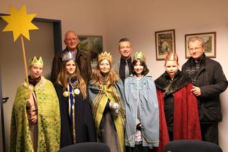 Anfang des neuen Jahres waren die Sternsinger der Katholischen Pfarrei St. Maria Köthen unterwegs und brachten die Botschaft von der Geburt Jesu im Stall von Bethlehem und den Segen Gottes für das neue Jahr in die Häuser im Altkreis Köthen. Wie bereits in all den Jahren vor der Pandemie kamen sie auch in die Kreisverwaltung, wo Landrat Andy Grabner die fünf jungen Sternsinger sowie Pfarrer Armin Kensbock und Gemeindereferent Matthias Thaut empfing. Landrat Grabner würdigte das Engagement der jungen Leute, sich für Kinder in Not einzusetzen.
