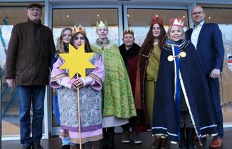 Anfang des neuen Jahres waren die Sternsinger der Katholischen Pfarrei St. Maria Köthen wieder unterwegs und brachten die Botschaft von der Geburt Jesu im Stall von Bethlehem und den Segen Gottes für das neue Jahr in die Häuser im Altkreis Köthen. Traditionell kamen sie auch in die Kreisverwaltung, wo der stellvertretende Landrat Volker Krüger die sechs jungen Sternsinger, also Nele, Marie, Tim, Julia, Anna und Marie sowie Gemeindereferent Matthias Thaut empfing. Volker Krüger würdigte das Engagement der jungen Leute, sich in ihrer Freizeit für andere Kinder, denen es nicht so gut geht, einzusetzen.