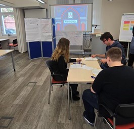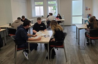 Die Auszubildenden besprechen ihr Vorgehen im Planspiel.