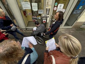 Der Einladung gefolgt waren zahlreiche Bürgerinnen und Bürger, Köthens Oberbürgermeisterin Christina Buchheim, Citymanager Pit Kochmann, Mitglieder des Behindertenbeirats und andere Interessierte. Gemeinsam mit Betroffenen ging es von Tür zu Tür – auf einem Fragebogen wurde notiert, wie barrierefrei das Geschäft oder eine öffentliche Eirichtung ist, ob es zum Beispiel Stufen vor der Tür, einen automatischen Türöffner, einen barrierefreien Hintereingang oder ein rollstuhlgerechtes WC gibt.