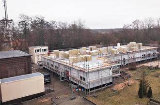 Die Bauarbeiten am Neubau für die Förderschule „An der Kastanie“ in Bitterfeld gehen zügig voran.
