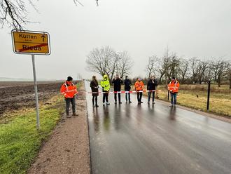 Symbolisch vollzogen wurde die Freigae der K 2064 mit dem Durchscneiden eines Absperrbandes durch Vertreter des Landkreises, der Stadt Zörbig und der Baufirma.
