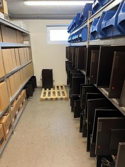 Im Lager muss ich die Monitore inventarisieren und testen.