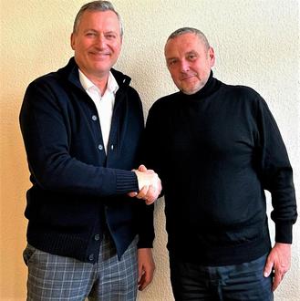 Andreas Rößler, zuständiger Dezernent der Kreisverwaltung (links), bedankt sich bei Wolfgang Mengel für die langjährige Tätigkeit als Kreisjägermeister.