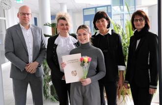 Volker Krüger, die Leiterin des Fachbereiches Personal Heike Wähnelt, die Ausbildungsleiterin Petra Meißner und Annett Mosch vom Personalrat gratulierten der jungen Frau und freuten sich sehr, Frau Scheumann im Team der Landkreisverwaltung begrüßen zu dürfen. Sie wünschten der Neueinsteigerin in das Berufsleben für die berufliche und private Zukunft alles Gute und weiterhin viel Erfolg.