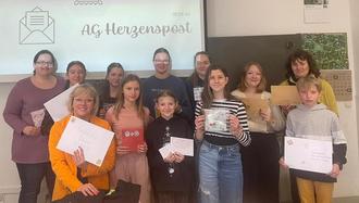 Die „AG Herzenspost“ um Leiterin Lisa Walther gründete sich im Herbst 2022 und begann direkt mit dem Projekt „Adventspost“ in Kooperation mit dem MehrGenerationenHaus Bitterfeld-Wolfen. Es wurde gemalt und gebastelt, geschrieben und gebacken. Insgesamt konnten auf diesem Weg knapp 90 ältere und kranke Menschen beglückt werden. Viele der Seniorinnen und Senioren haben sogar mit Antwortbriefen ihre Dankbarkeit zum Ausdruck gebracht. „Das bedeutet den Kindern wahnsinnig viel“, so Lisa Walther.