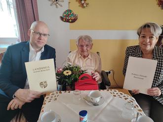 Elisabeth Faupel beging im Pflegeheim Lindenstraße ihren 100. Geburtstag. Glückwünsche erhielt die Jubilarin unter anderem vom stellvertretenden Landrat Volker Krüger und Köthens Bürgermeisterin Christina Buchheim.