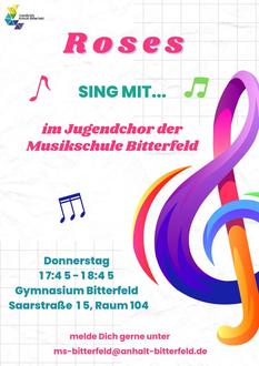 Unser Jugendchor „Bittersweet“ probt jeden Donnerstag von 17:45 bis 18:45 Uhr in der Musikschule in Bitterfeld.