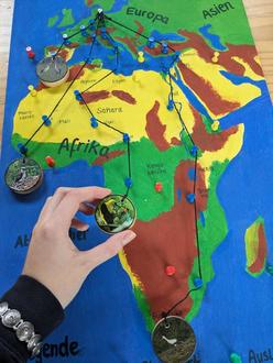 Pauline widmet sich dem Brettspiel „Der Vogelzug“.